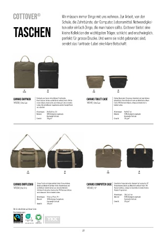 CANVAS DAYPACK Rucksack aus Canvas mit sichtbarer Fronttasche. CANVAS TOILET CASE Kleines Necessaire. Ein grosses Innenfach und zwei kleinere