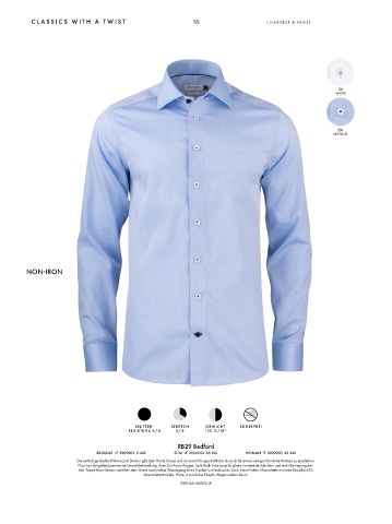 heit. Taped Main Seams verleihen dem Hemd nach jedem Waschgang einen frischen und exklusiven Look. Keine Falten. Manschette mit extra Knopfloch für