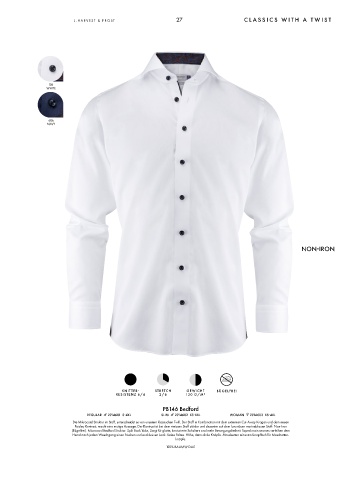 Hemd nach jedem Waschgang einen frischen und excklusiven Look. Keine Falten. Höhe, 4mm dicke Knöpfe. Maschetten mit extra Knopfloch für Maschetten-