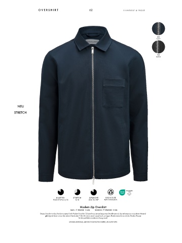 Dieses Overshirt ist das Pendant unseres Patch-Pocket-Overshirt. Es besteht aus einem bequemen Stretchmaterial, das teilweise aus recyceltem Material