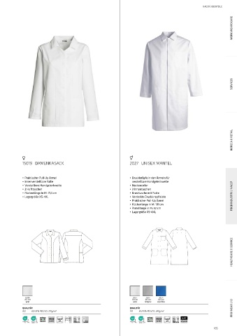 • Lagergröße XS-4XL • Verdeckte Druckknopfleiste FOOD INDUSTRY / HACCP