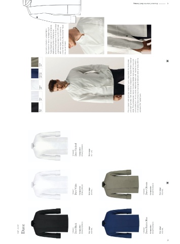 101184001 Dave White Composition 65%PE/35%CO Size range 3XS-6XL 101184069 Dave Olivette Composition 65%rPET/35%CO Size range XXS-6XL