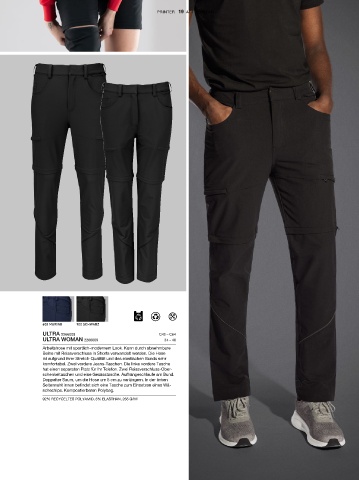 Beine mit Reissverschluss in Shorts verwandelt werden. Die Hose