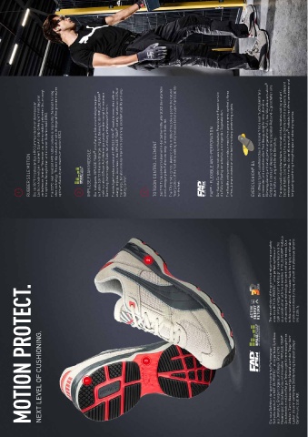 MOTION  OF  LEVEL  NEXT  1                   3                                               Die neue Definition der sportinspirierten Performance Sicherheitsschuhlinie MOTION PROTECT ist die perfekte Symbiose aus Dämpfung, Energierückgabe und Design. Eine echte Neuerung ist der Sohlenaufbau mit innovativer IMPULSE.FOAM ® Zwischensohle mit Anti-Fatigue Technologie für ermüdungsfreies Arbeiten. Durch dieses neuartige Material spürt der Träger beim Laufen die