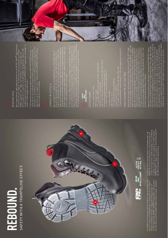 REBOUND.  TRAMPOLINE  A  WITH  SAFETY                   2                                    Die REBOUND-Serie bietet optimierte Dämpfungseigenschaften und Komfort, um physische Belastungen weitestgehend zu minimieren. Herzstück ist das komfortable 3-lagige Dämpfungskonzept mit schnell reagierender EFFECT.FOAM ® Zwischensohle in Kombination mit dem evercushion ® pro ESD Fußbett und der robusten Laufsohle.