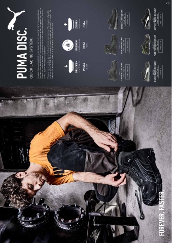 PUMA LACING QUICK Vorteil - auch mit Handschuhen bedienbar. DRÜCKEN zum Fixieren PRESS to lock 64.072.1 CASCADES DISC LOW Seite | Page 100 SCUFF CAPS EVO 64.454.1 CHARGE BLACK DISC LOW Seite | Page 37 MOTION CL