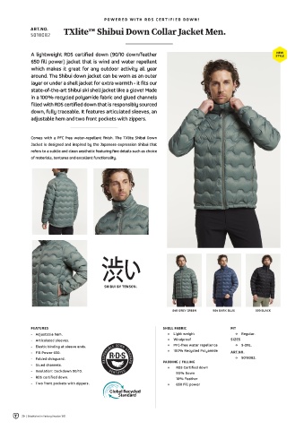 ART.NO. TXlite™ Shibui Down Collar Jacket Men. TXlite™ Shibui Down Collar Jacket Wmn.