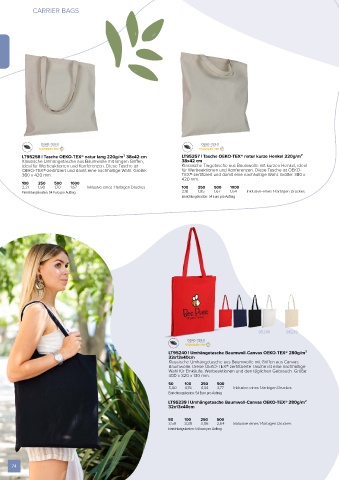 LT95258 | Tasche OEKO-TEX® natur lang 220g/m² 38x42 cm LT95257 | Tasche OEKO-TEX® natur kurze Henkel 220g/m²