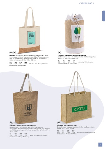 LT91391 | Tragetasche Baumwolle & Kork 170g/m² 35 x 40cm LT95268 | Seesack aus Baumwolle und Jute