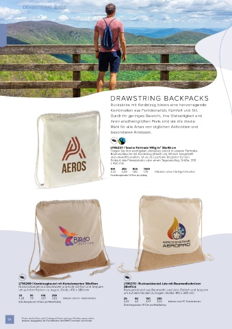 LT95269 | Kordelzugbeutel mit Korkelementen 38x41cm LT95270 | Rucksackbeutel Jute mit Baumwollschnüren