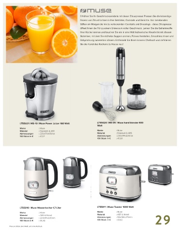 LT55021 | MS-10 | Muse Power Juicer 160 Watt LT55020 | MS-05 | Muse hand blender 600