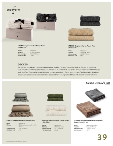 LT52122 | Sagaform Ulle Plaid 130x170 cm LT52124 | Sagaform Maja Fleece kariert LT54502 | Kosta Linnewafveri Fleece Plaid
