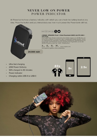 time. Press the button and you immediately see how much power the Powerbank still has.